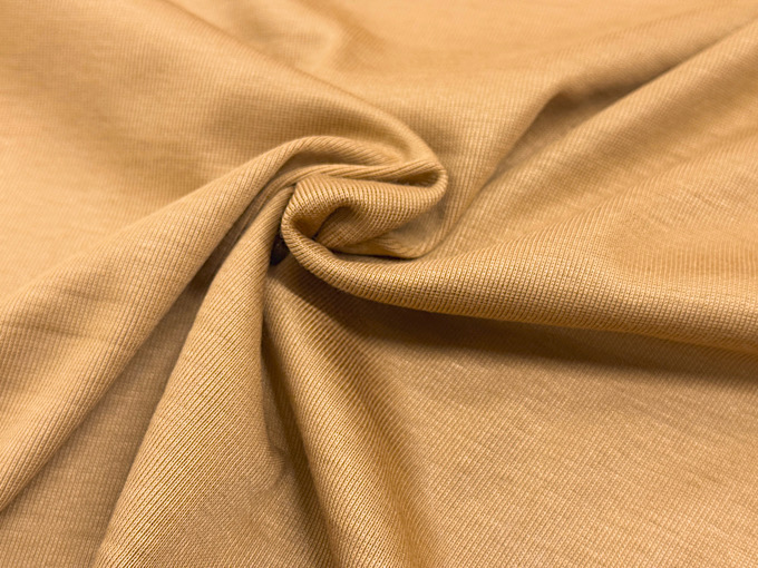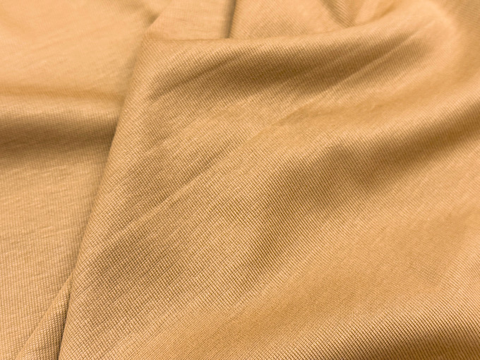 適度にハリのあるフライスニットです。撚糸からこだわった糸の持つサラッと感、上品なドレープ、マットな美しい光沢感が特徴です。カットソーのハンドメイドにおすすめです。