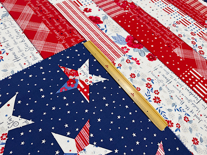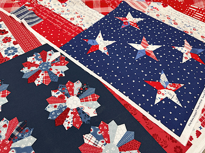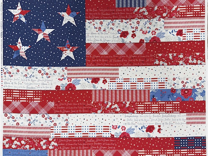 楽しくてユニークなデザインが豊富なUSAコットンシリーズ。こちらはパッチワーク調に表現された星条旗風のプリントがかわいらしいパネルプリント生地です。