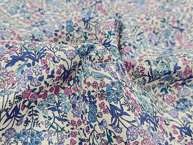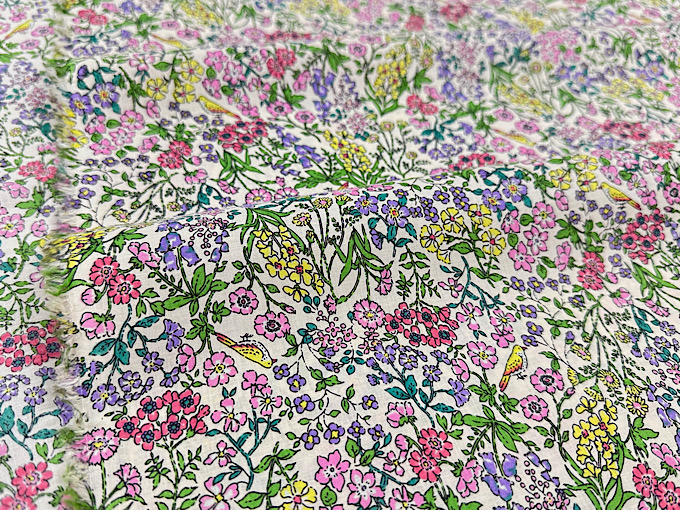 ロングセラーにつき新色「ラベンダー地」追加♪ 上品で繊細なフラワープリントが美しい、スケアプリントファブリックです