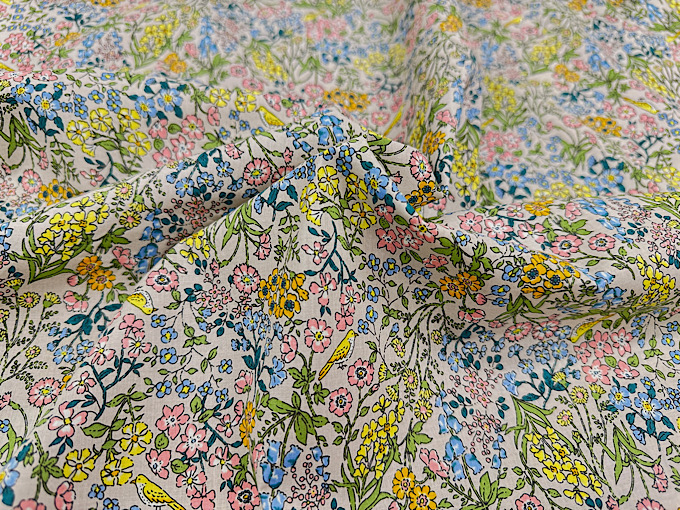 ★2024/12再入荷いたしました★ ソフリー加工(柔らか加工)のコットンリネンのプリント生地です ブラウス・シャツワンピなどのハンドメイドにおすすめです