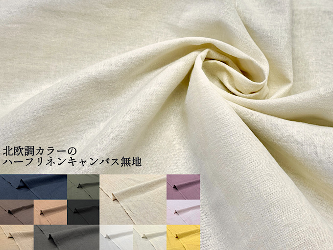【現品限り特価】ニュアンスカラーの国産ハーフリネンキャンバス無地