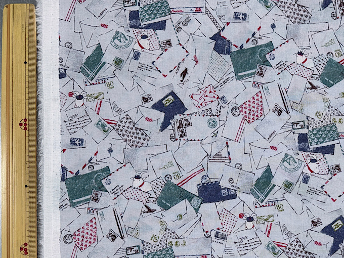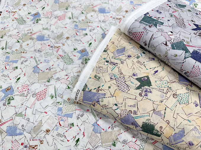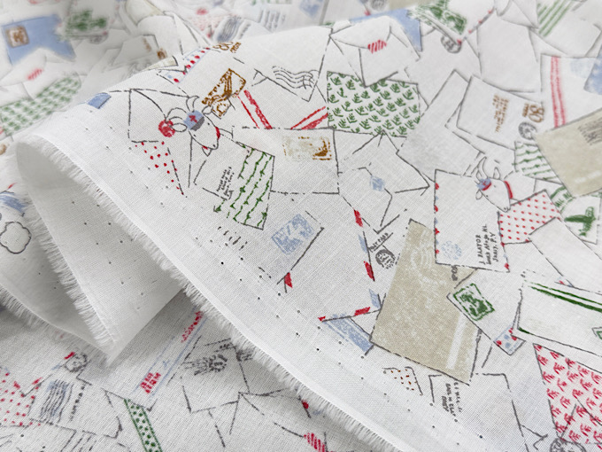 お手紙どっさり、ヤギの郵便屋さんは大忙し!ポストカードや封筒に囲まれたヤギの郵便屋さんが可愛らしい60ローンプリント生地です。シャツやブラウスなどのお洋服づくりから、小物雑貨まで柄を活かしたハンドメイドにおすすめの生地です。