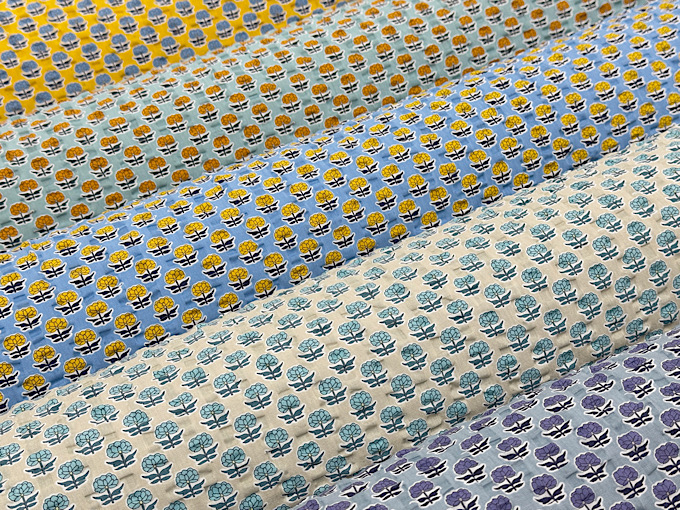 夏のハンドメイドにぴったりなリップル布地に様々なお花の模様をプリントしました